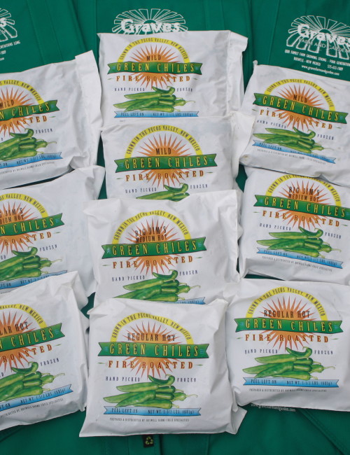 Fresh Green Chile loses water weight when Fire Roasted. This is why a Fresh Bushel weights 22.5 LBS and 15 LBS Fire Roasted, and Frozen. Big Jim may come in 1LBS Packages (15 Packages in a Full Bushel and 8 Packages in a Half Bushel) Frozen Fire Roasted Green Chile has to be shipped 2 day air. Due to it being packed in dry ice. The shipping is more expensive for this reason.